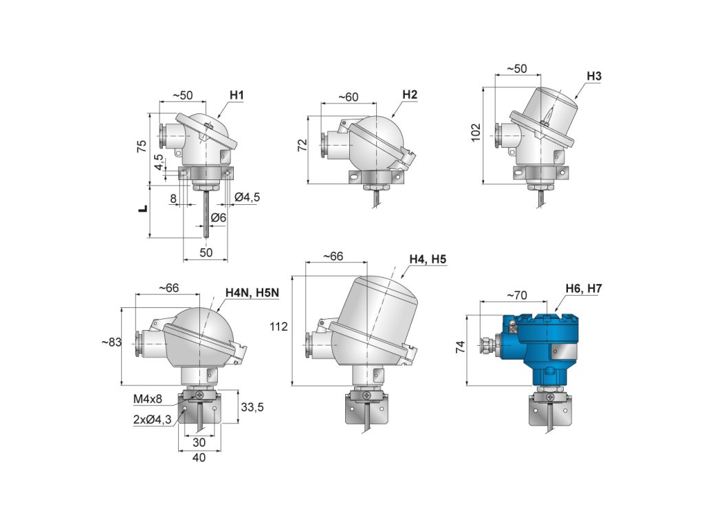 - Možnost montáže převodníku s výstupem 4 až 20 mA do hlavice, včetně provedení s galvanickým oddělením a jiskrově bezpečným provedením.