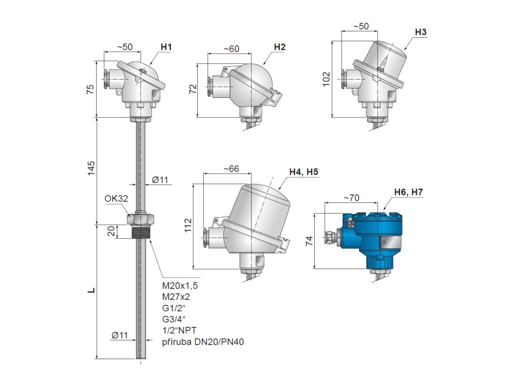 - Možnost montáže převodníku s výstupem 4 až 20 mA, HART, Profibus, Fieldbus do hlavice, včetně provedení s galvanickým oddělením a jiskrově bezpečným provedením.