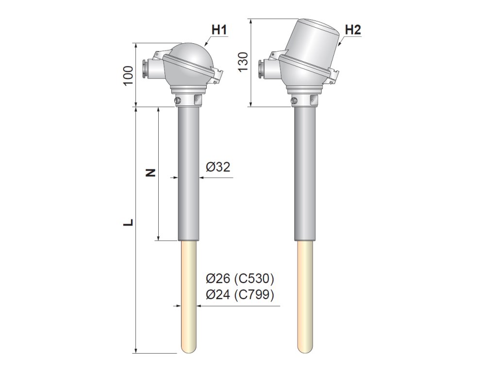 Vlastnosti produktu T1580 C24/C26 Termoelektrické snímače teploty s keramickou ochrannou trubkou CeraTEMP® 80