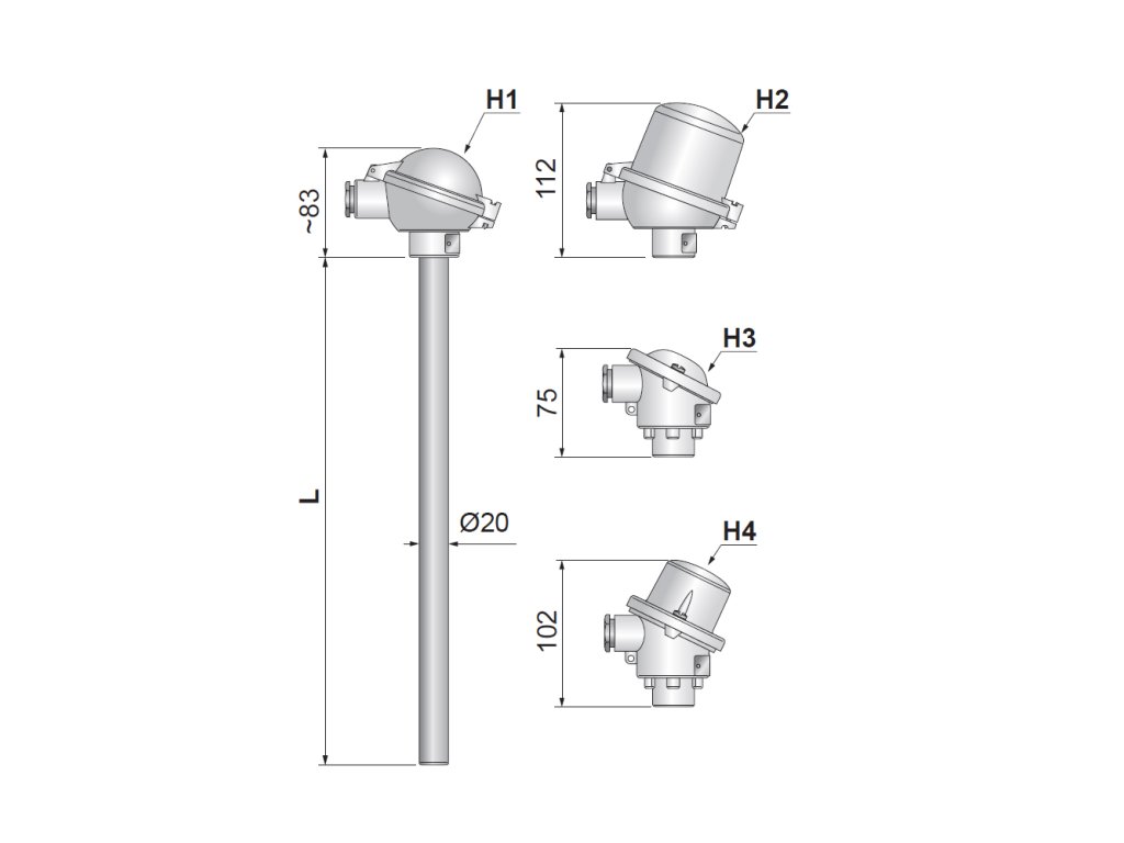 - Možnost montáže převodníku s výstupem 4 až 20 mA, HART, Profibus, Fieldbus do hlavice, včetně provedení s galvanickým oddělením a jiskrově bezpečným provedením.