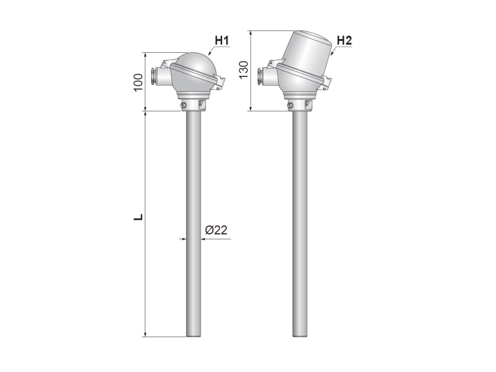 Vlastnosti produktu T1580 K22 Termoelektrické snímače teploty s kovovou ochrannou trubkou CeraTEMP® 80